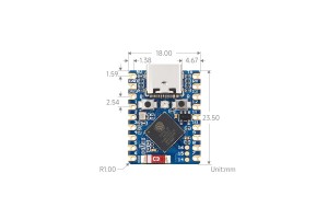 ESP32-S3 WiFi/ Bluetooth dual-mode chip. The ESP32-S3 is a 32-bit RISC-V CPU that contains the FPU (floating point unit), which can perform 32-bit single-precision operations and has powerful computing power. It has excellent RF performance and supports IEEE 802.11b /g/n WiFi and Bluetooth 5 (LE) protocols. The board comes with an external antenna to enhance signal strength for wireless applications. It also has a small and delicate form factor combined with a single-sided surface mount design.
