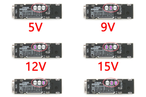 Module default output 28v can adjust different resistance, can output 5V 9V, 12V, 15V, 20V voltage respectively, can be in accordance with the protocol priority, automatically complete the handshake with the charger, and according to the preset voltage output. The output of the decoder cannot be charged directly to the mobile phone. Please confirm the matching of the output voltage and the load demand voltage before loading.