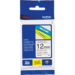 TZE231S laminiertes Schriftband schwarz auf weiß 12mm