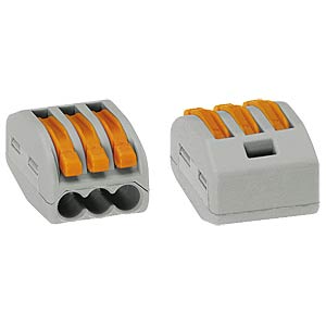 Klemmt bis zu 3 abisolierte, feindrähtige Leiter von 0,08 bis 4,0mm², ein- oder mehrdrähtige Leiter bis 2,5mm² ohne Werkzeug.